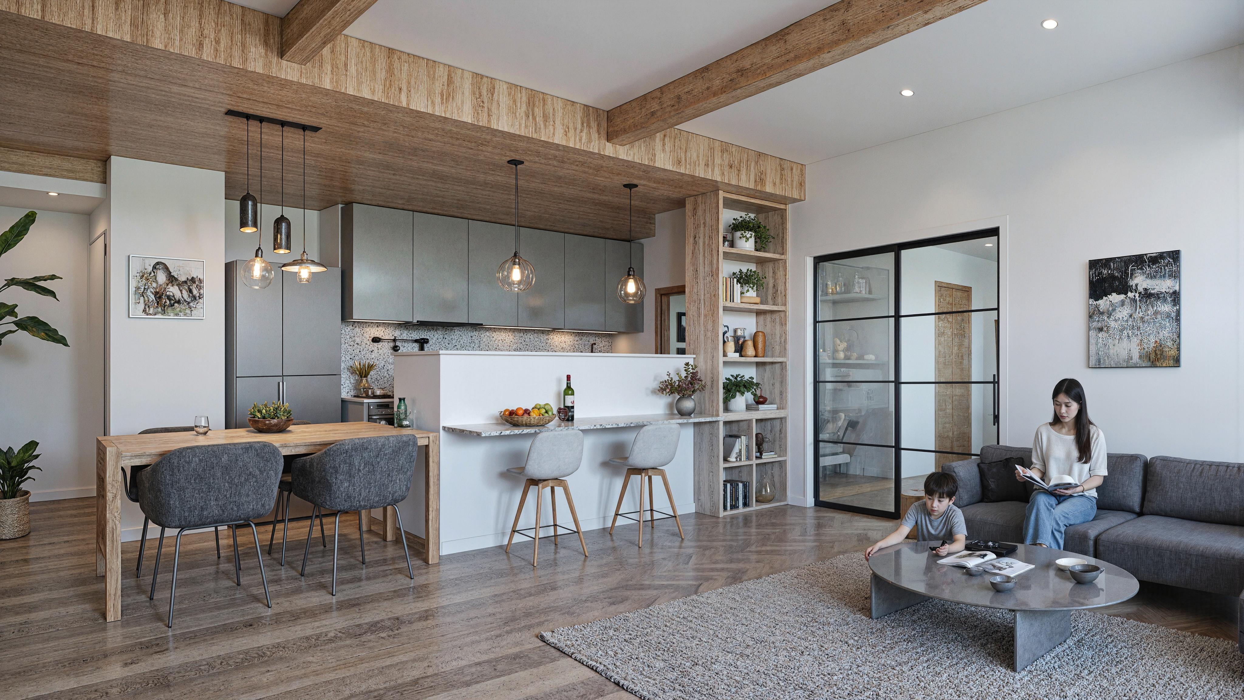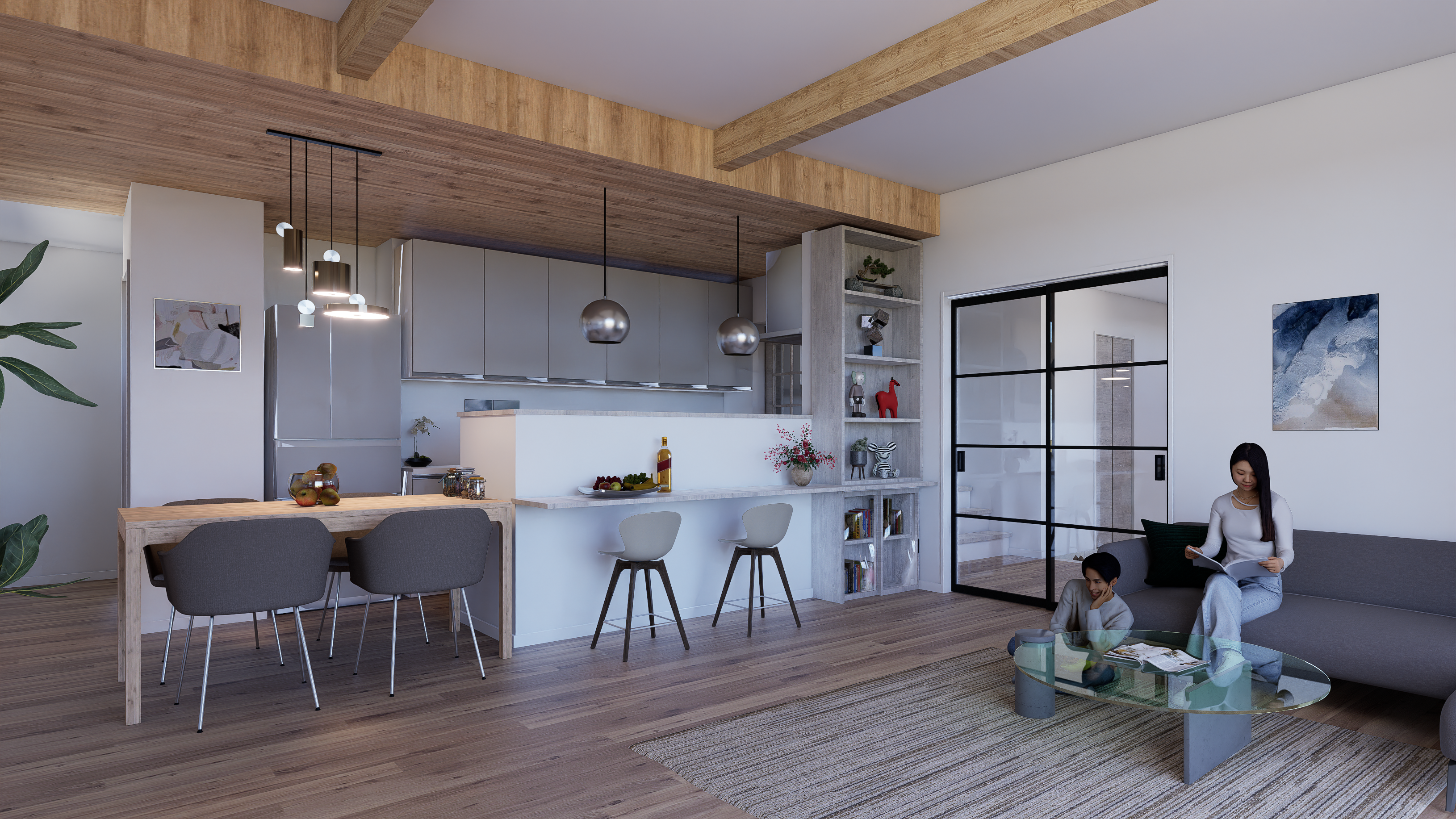 スライダーを動かして、AIによる建築パースのビフォー・アフターを比較してください。